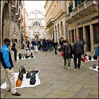 Il bello poi è che coloro che invece sono autorizzati a commerciare nelle cosiddette ” bancarelle “, vendano di tutto in particolare, profumi, scarpe, orologi, biancheria, Cd e Dvd, il tutto d’imitazione, tester, falsi o in copyright…ma di questi e come questi possano essere venduti non se ne occupa nessuno… come se fossero a tutti gli effetti legali!!!