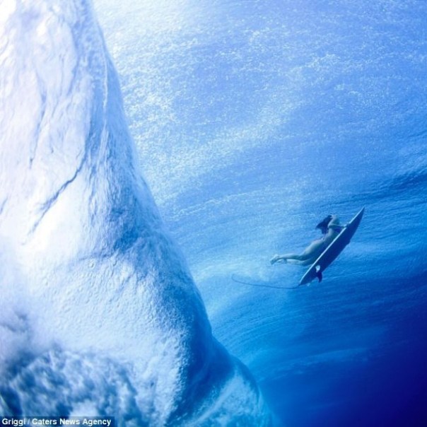 Lucia Griggi, 30, took this incredible image of a female surfer gliding under a massive wave while dodging sharks off the coast of Fiji by mkovarsk // via Instagram http://instagram.com/p/ZRHJ1ISOEK/
