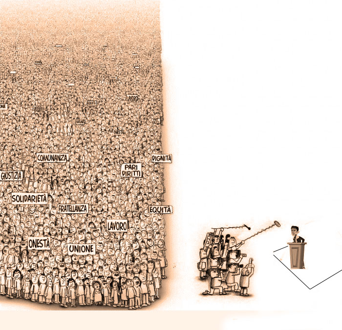 Ma tanto si sa… non cambierà nulla, perché ci sarà sempre qualche fesso posto lì sotto ad ascoltare quelle vacue parole!!!