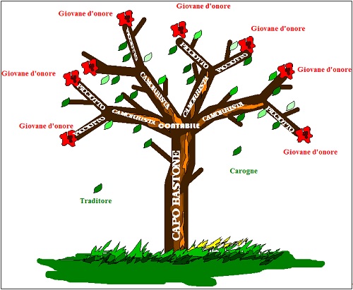 Quel massone/mafioso pensa di trovarsi in un albero, già… all’interno di un sistema relazionale,  ma a differenza di quell’ambiente sano e vivente, che si espande dal terreno verso l’aria e la luce… il suo sistema clientelare privilegia infettare ogni sua forma d’interazione, perché la rete organizzativa che lega ciascuno di loro è sovrastata da una serie di regole, che si estende dal singolo nodo “adepta/mafioso” alla punta più esterna…