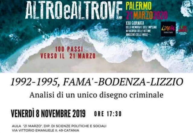 Ecco quindi che è stato organizzato nel pomeriggio un incontro – ore 17:30 nell’aula 21 del dipartimento di Scienze politiche in via Vittorio Emanuele 49, dal titolo: Famà, Bodenza, Lizzio, analisi di un disegno criminale”.