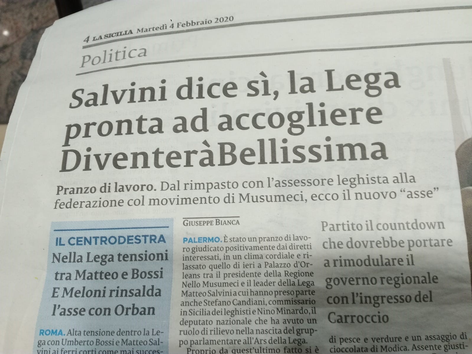 Mi auguro che qualcuno – a differenza di quanto ho letto stamani nel quotidiano “La Sicilia” – comprenda come gli interessi della Lega siano ben diversi da quelli di cui soffre la nostra terra!!!