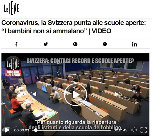 Già… è uscito un articolo sulle “Iene” che riprende quanto il sottoscritto aveva riportato (con allegati i video) sulla decisione del governo elvetico di far riprendere nuovamente la scuola, in particolare ai più piccoli: