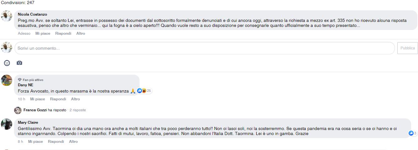 Ecco perché mi sono permesso di inviare una nota personale sulla sua pagina di “Facebook”, nella quale il sottoscritto descrive dubbi sull’operato svolto da taluni apparati di quegli uffici istituzionali…