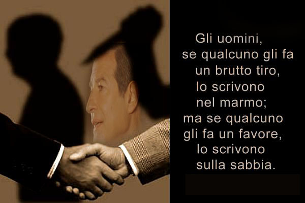 Chiedo quindi a quanti sopra elencati, in considerazione del fatto che norma mirava principalmente ad abolire il vitalizio per coloro che sono stati condannati per reati legati alla mafia, mi sembra che la bocciatura dimostri – senza alcun ragionevole dubbio – che nel ns. paese ed in particolare nella nostra terra… la Sicilia, quanto dichiarato in lotta all’illegalità sia realizzato soltanto per ipocrisia, perché nella sostanza, quando cioè si tratta di schierarsi e dichiarare in modo chiaro e deciso la propria posizione, ecco che le “gambe tremano” e si dimostra che ad esporre belle parole si è bravi, ma quando si tratta di sostanza i fatti dimostrano il contrario…