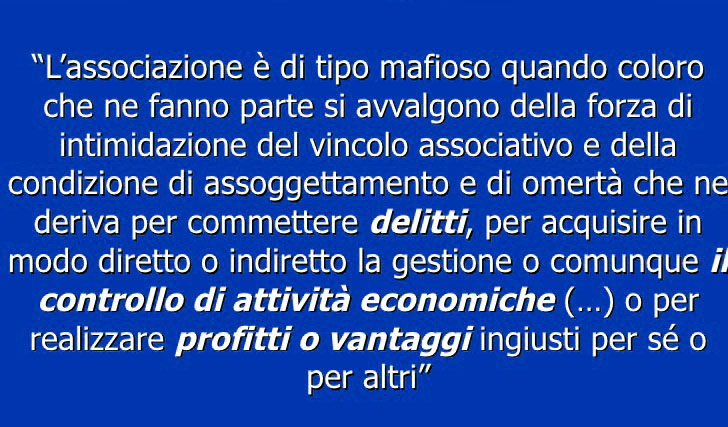 Basti vedere in quali modi opera l’associazione mafiosa, per comprendere come questa presenti una particolare attitudine ad intrecciare rapporti di cooperazione (attivi e passivi), con tutti quei soggetti “esterni”, dalla cui collaborazione, riesce a condizionare a loro favore, tutti i settori della vita civile: dalla politica all’economia, dalla finanza alle istituzioni, dalla gestione occupazionale agli incarichi ai professionisti, fino al controllo del voto dei cittadini!!!