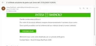 Inizia l’anno… ed iniziano le truffe on line: correntisti di Banca "Intesa-SanPaolo" state attenti a queste mail…