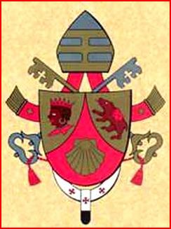 E siamo quindi giunti al ultimo Papa descritto, il 111° che San Malachia descrive come “ De gloria olivae ”, a questa profezia, in molti pensarono che si fosse sbagliato, poiché di “colore olivastro” certamente il nostro papa aveva poco, ma, se si osserva attentamente, ci sono dei dettagli che mettono in relazione il motto di San Malachia con Bendetto XVI:– Il primo è lo stemma scelto dallo stesso Papa, possiamo vedere che nel cantone in alto a sinistra troneggia la testa di un Re (con tanto di corona) nero e con collana rossa.