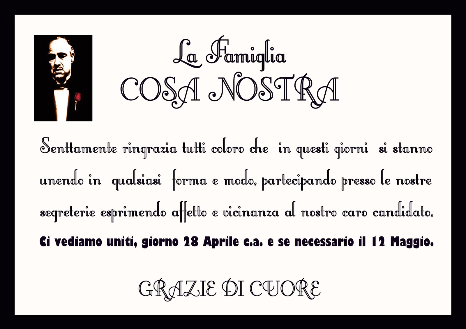 Analoga circostanza è accaduta la settimana scorsa in Gran Bretagna, ma potrei continuare con quanto dichiarato negli Usa da uno dei contendenti durante un comizio organizzato per le elezioni presidenziali oppure quanto accaduto in Francia dove tutti i partiti si sono uniti per non rischiare una schiacciante vittoria della Marine Le Pen!!!