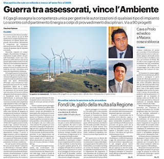 Sicilia: Conflitto istituzionale tra gli Assessorati all'Energia e al Territorio & Ambiente.