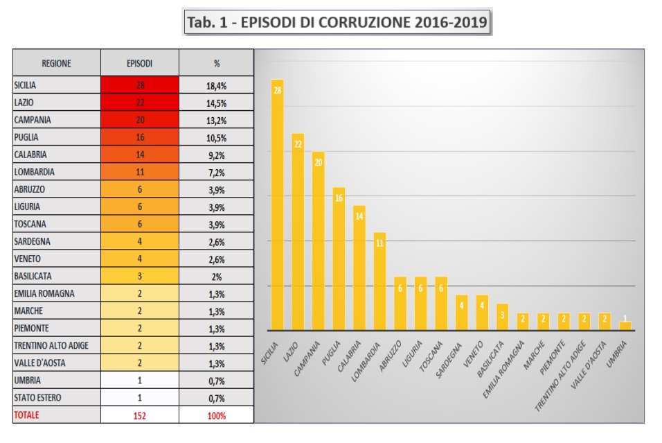 Peraltro, indovinate un po’: la nostra regione è la prima in episodi di corruzione con 28 casi!!!