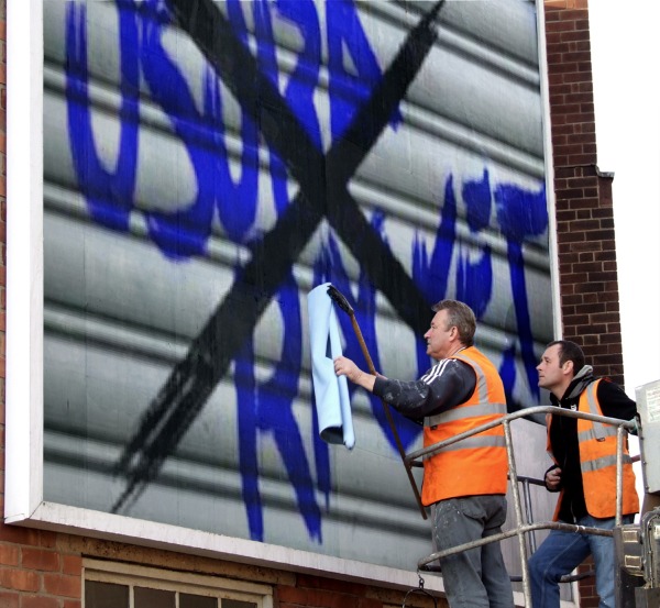 La scritta diceva: «Un intero popolo che paga il pizzo è un popolo senza dignità».