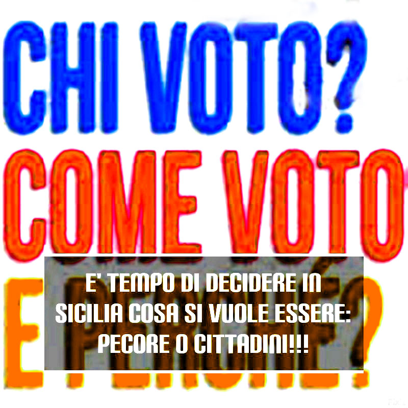 Ora, in questa preciso momento, mi sembra che stia avvenendo il contrario…Ho l’impressione che si pensi di noi siciliani… come dei fessi, gente senza memoria oppure debbo pensare che questi signori sono certi, che al momento opportuno, i cittadini baratteranno quel loro voto… per qualcosa in cambio e forse questa seconda ipotesi, non è poi, così tanto errata, anzi mi dispiace dirlo… ma risulta molto concreta…
