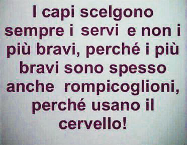 I capi scelgono sempre i servi e non i più bravi, perché i più bravi sono spesso anche rompicoglioni… perché usano il cervello!!!