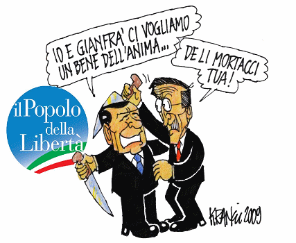 Fini: alla prossima galleria… mi appioppo un altro bacio sulla mano e così gli mollo un’altro schiaffo a Berlusconi…