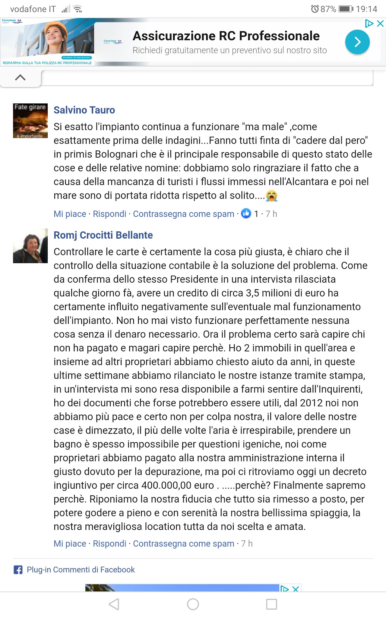 Mi dispiace Sig.ri, ma credo che su questa vicenda siate leggermente ritardo, ah… permettetemi di aggiungere che per quanto riguarda le denunce, queste sono state già da tempo presentate a tutti gli organi inquirenti, che hanno – come forse non sapete – portato al sequestro di quell’area e del depuratore fognario…