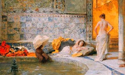 A quelle profonde e sensibili parole… il cavaliere non poté resistere… uscì, con il corpo lucidato da olii ed essenze, da quel hammam, avvolto nel suo asciugamano bianco e tutto sudato…