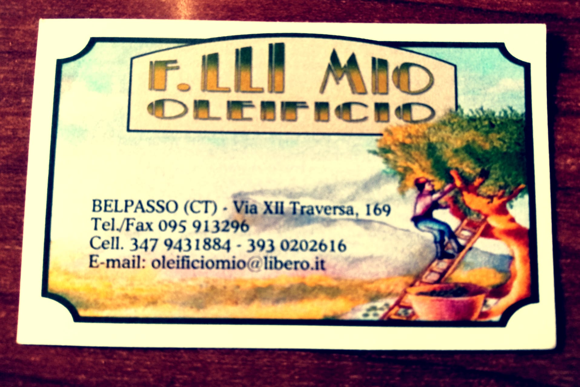 Mio“, non come possesso del termine e neppure per averlo fatto proprio, no… nulla di tutto ciò, esso rappresenta il nome di una azienda storica, la vita di una famiglia che ha dedicato per quattro generazioni una cura particolare a quelle piante di olive per poi sapientemente trasformarle in un liquido colore verde/oro grazie ai propri frantoi…