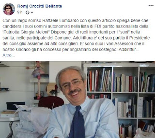 Certo, leggere ancora una volta – senza voler entrare nel merito delle richieste più o meno legittime – di favori personali, cambio casacche, etc…. mi fa convincere sempre di più, come la politica in questa nostro Paese, in particolare nella nostra regione, sia qualcosa di esecrabile, un qualcosa di spregevole e ripugnante, perché basa tutto sugli interessi personali e mai su quelli collettivi…