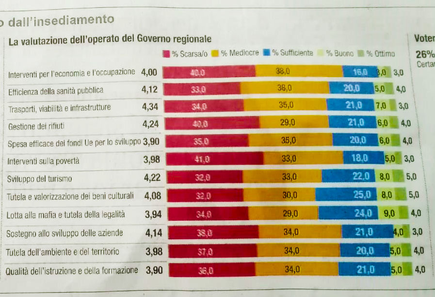 Nel quotidiano “La Sicilia” di stamani è stato riportato un sondaggio sull’operato del Presidente Musumeci ad un anno dell’insediamento del suo esecutivo…