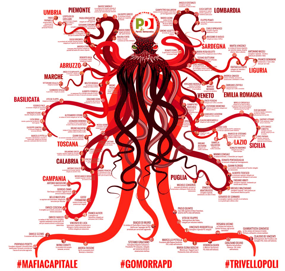 E solo per finire… (ma è un modo eufemistico per voler concludere…), cosa dire di quegli esponenti del Pd, sindaci, governatori, consiglieri ed esponenti del partito sul territorio, coinvolti in inchieste giudiziarie…???