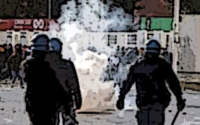 Le forze dell’ordine hanno dovuto reagire con lacrimogeni e cariche d’assalto…, un povero agente viene chiamato a fare il proprio dovere per quelle poche migliaia di euro e non sa… se potrà rientrare a casa e rivedere nuovamente i propri cari!!!