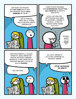 Per confondere la storia, si provano a fare comparazioni tra popoli diversi… e nel far ciò, ci si dimentica che gli ebrei erano cittadini liberi europei, uomini, donne e bambini, italiani, tedeschi, polacchi, francesi, spagnoli, ecc… che a differenza dei nostri attuali migranti, sono stati – con la forza – presi dalle loro abitazioni, ed inviati nei campi di concentramento e di sterminio!!!