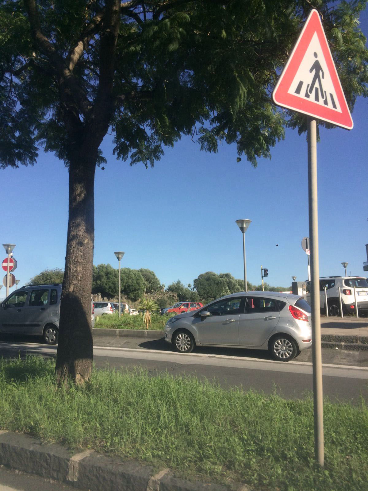 I dissuasori posti a limitare la corsia dell’autobus, sono stati quasi tutti divelti ed i pezzi residui sono anni che sono presenti lì per terra, senza che nessuno li tolga; analoga situazione per i cordoli in pietra lavica, posti per delimitare le strade; le aree a giardino totalmente rovinate, molte di esse non esistono più e dei marciapiedi, meglio non parlarne, il rischio di cadute è più certo… che probabile.